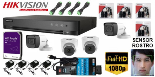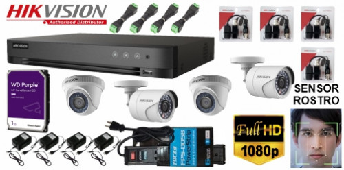KIT 4 CAMARAS FULL HD 1080P + SENSOR DE ROSTRO HIKVISION