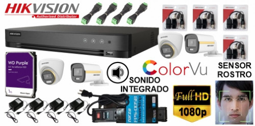 KIT 4 CAMARAS FULL HD 1080P + SONIDO INTEGRADO + SENSOR DE ROSTRO + COLOR VU HIKVISION
